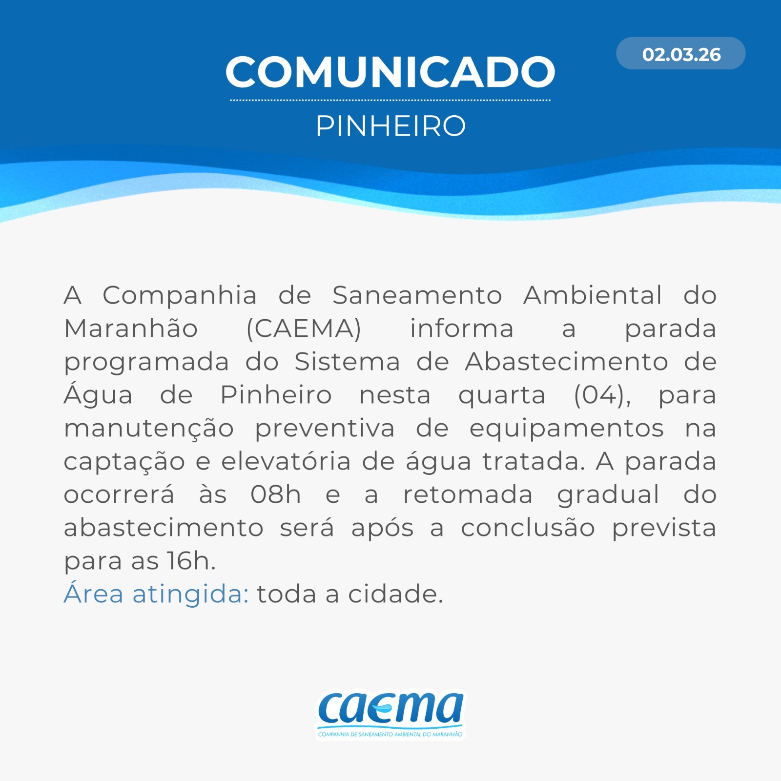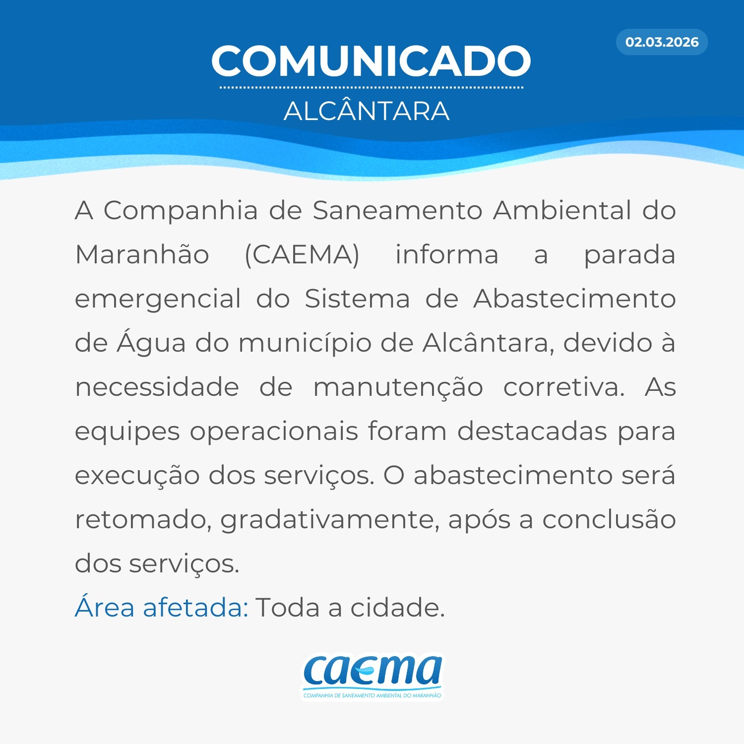 AVISO DE PRIVACIDADE: A CAEMA utiliza as informações sobre sua navegação para melhorar a sua experiência no site e oferecer soluções mais adequadas para você. Não utilizamos seus dados de cookies para estatísticas ou marketing. Ao continuar navegando, você concorda com a nossa Política de Privacidade.