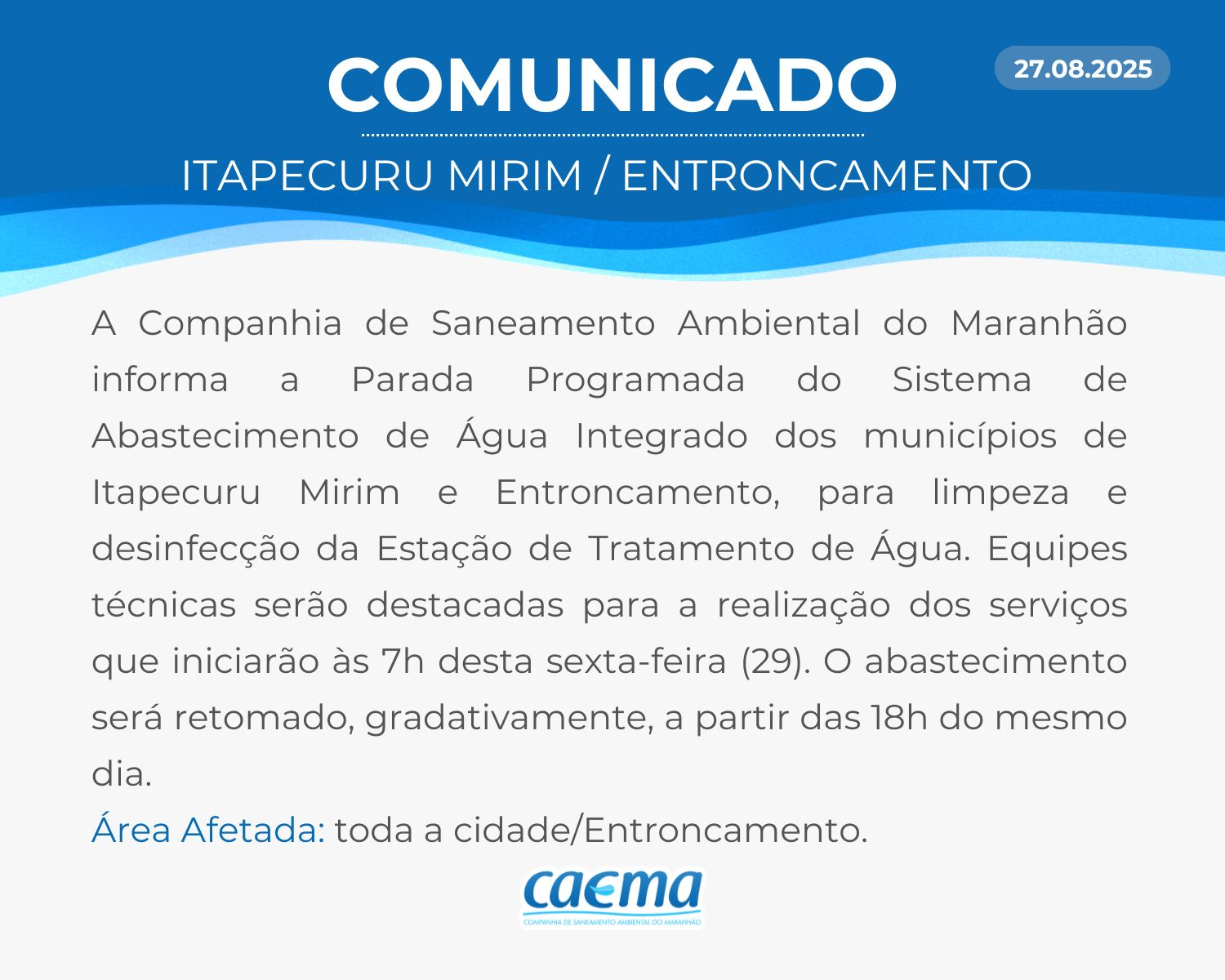 AVISO DE PRIVACIDADE: A CAEMA utiliza as informações sobre sua navegação para melhorar a sua experiência no site e oferecer soluções mais adequadas para você. Não utilizamos seus dados de cookies para estatísticas ou marketing. Ao continuar navegando, você concorda com a nossa Política de Privacidade.