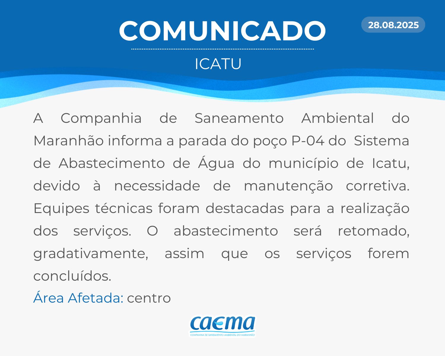 AVISO DE PRIVACIDADE: A CAEMA utiliza as informações sobre sua navegação para melhorar a sua experiência no site e oferecer soluções mais adequadas para você. Não utilizamos seus dados de cookies para estatísticas ou marketing. Ao continuar navegando, você concorda com a nossa Política de Privacidade.