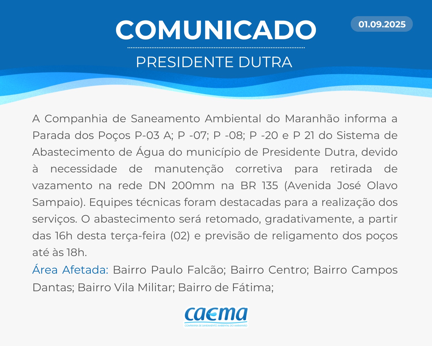 AVISO DE PRIVACIDADE: A CAEMA utiliza as informações sobre sua navegação para melhorar a sua experiência no site e oferecer soluções mais adequadas para você. Não utilizamos seus dados de cookies para estatísticas ou marketing. Ao continuar navegando, você concorda com a nossa Política de Privacidade.
