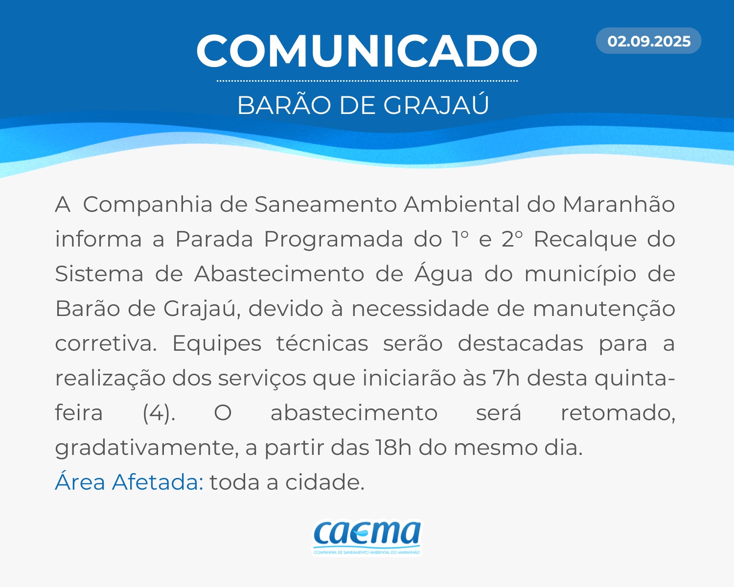 AVISO DE PRIVACIDADE: A CAEMA utiliza as informações sobre sua navegação para melhorar a sua experiência no site e oferecer soluções mais adequadas para você. Não utilizamos seus dados de cookies para estatísticas ou marketing. Ao continuar navegando, você concorda com a nossa Política de Privacidade.