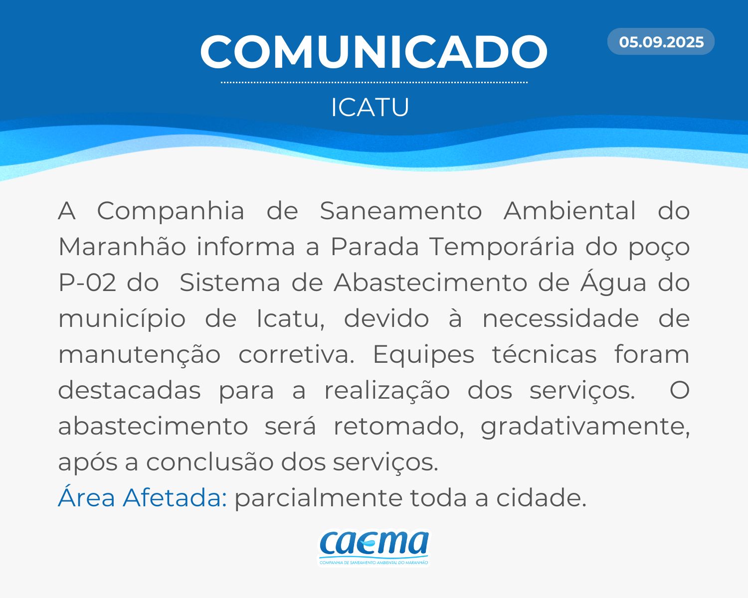 AVISO DE PRIVACIDADE: A CAEMA utiliza as informações sobre sua navegação para melhorar a sua experiência no site e oferecer soluções mais adequadas para você. Não utilizamos seus dados de cookies para estatísticas ou marketing. Ao continuar navegando, você concorda com a nossa Política de Privacidade.