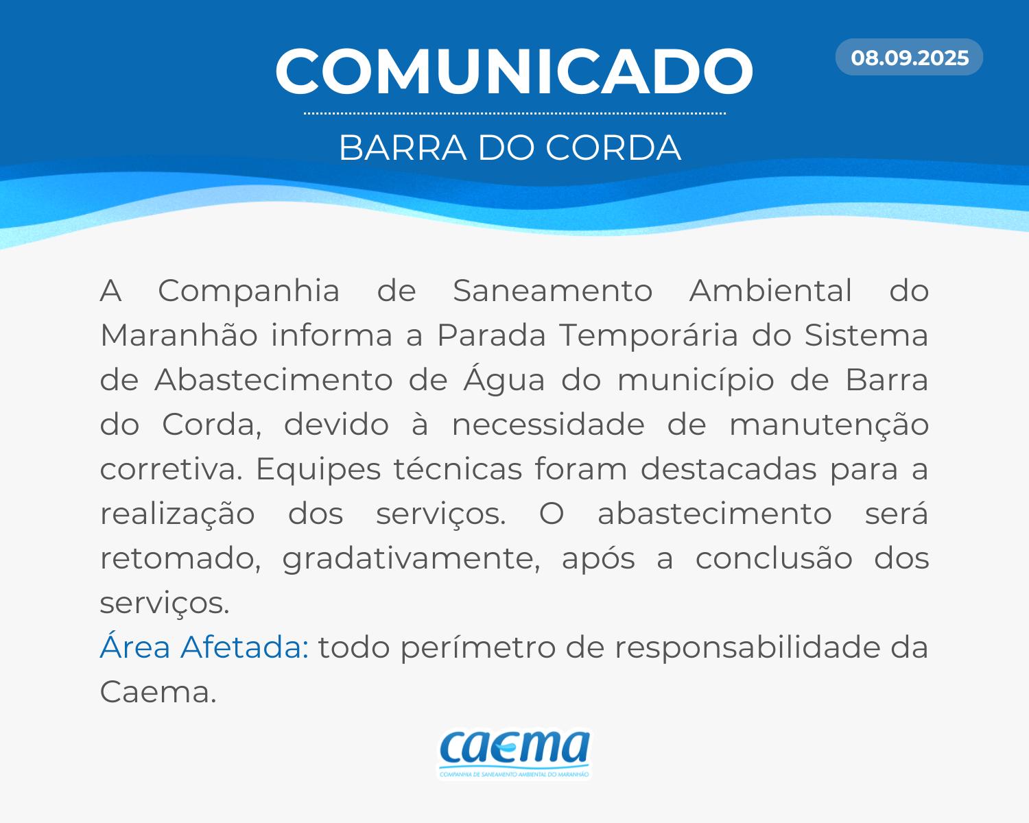 AVISO DE PRIVACIDADE: A CAEMA utiliza as informações sobre sua navegação para melhorar a sua experiência no site e oferecer soluções mais adequadas para você. Não utilizamos seus dados de cookies para estatísticas ou marketing. Ao continuar navegando, você concorda com a nossa Política de Privacidade.