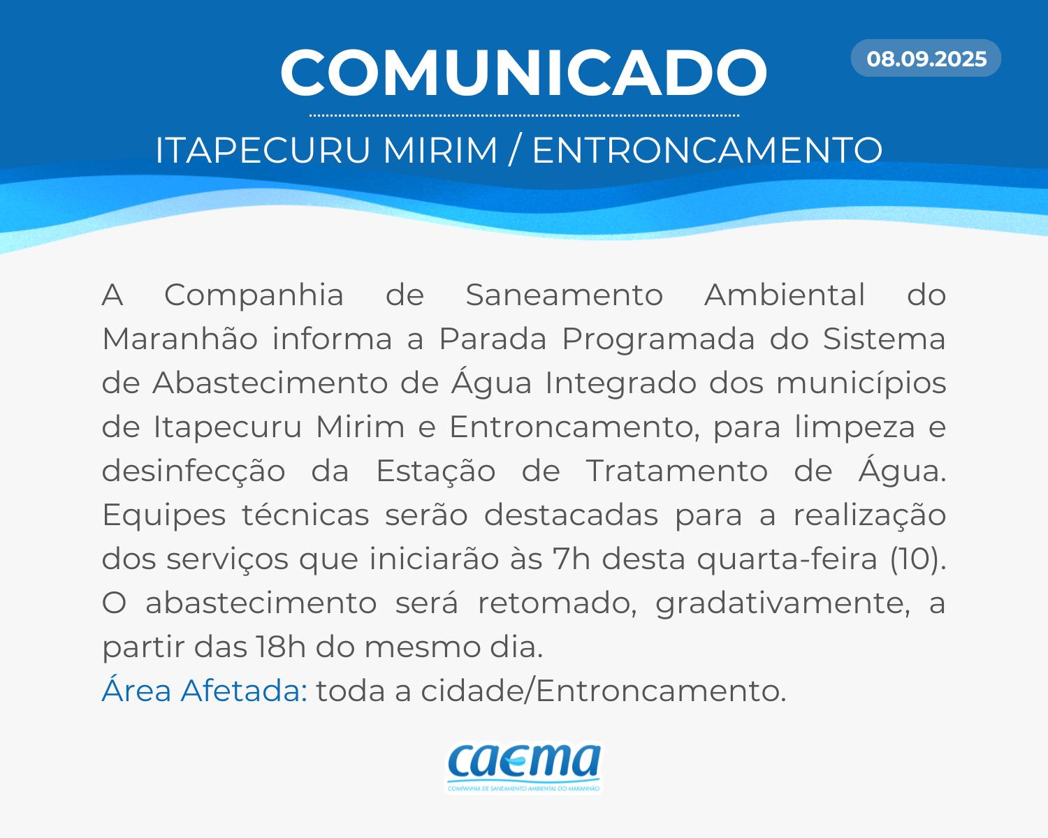 AVISO DE PRIVACIDADE: A CAEMA utiliza as informações sobre sua navegação para melhorar a sua experiência no site e oferecer soluções mais adequadas para você. Não utilizamos seus dados de cookies para estatísticas ou marketing. Ao continuar navegando, você concorda com a nossa Política de Privacidade.