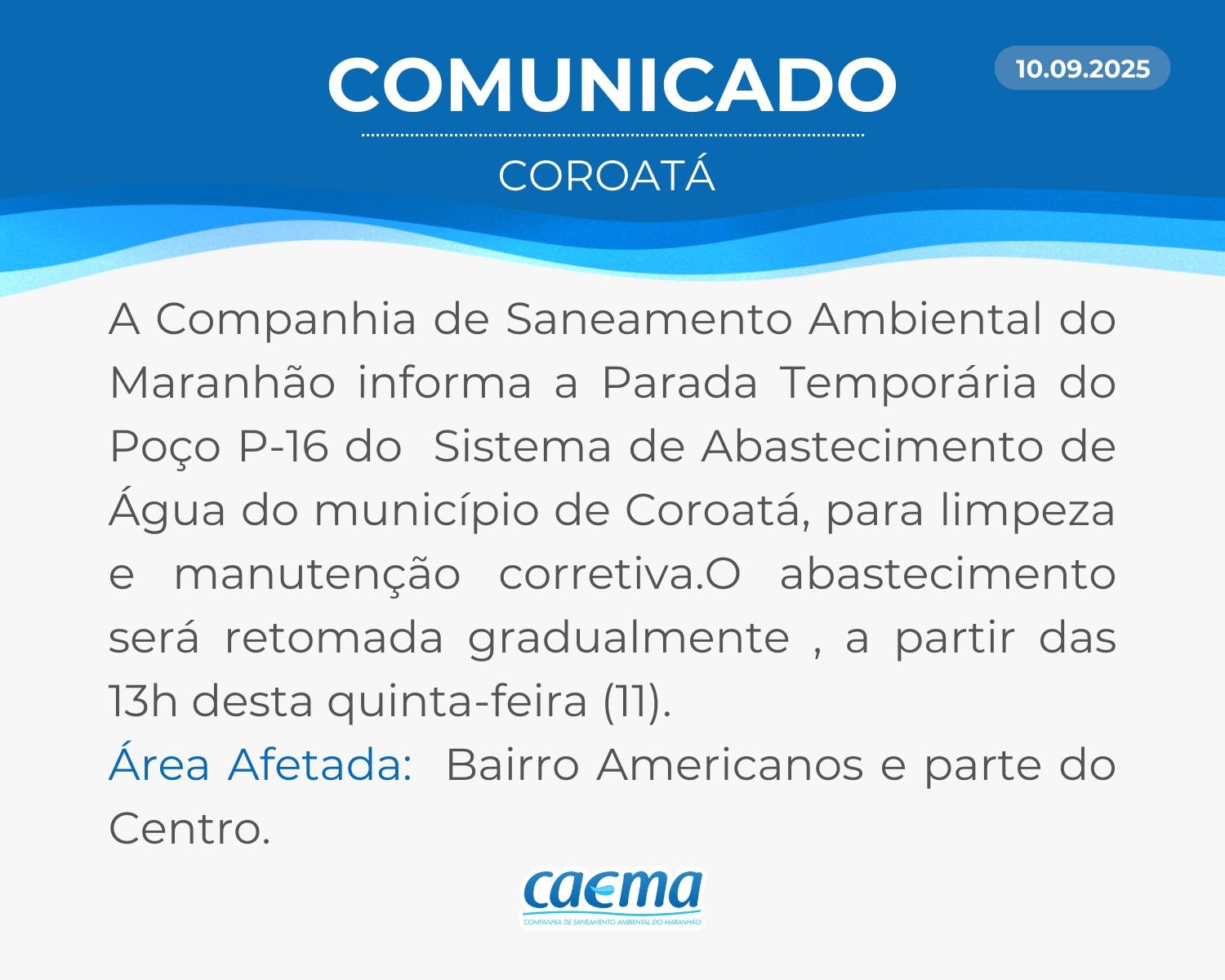 AVISO DE PRIVACIDADE: A CAEMA utiliza as informações sobre sua navegação para melhorar a sua experiência no site e oferecer soluções mais adequadas para você. Não utilizamos seus dados de cookies para estatísticas ou marketing. Ao continuar navegando, você concorda com a nossa Política de Privacidade.