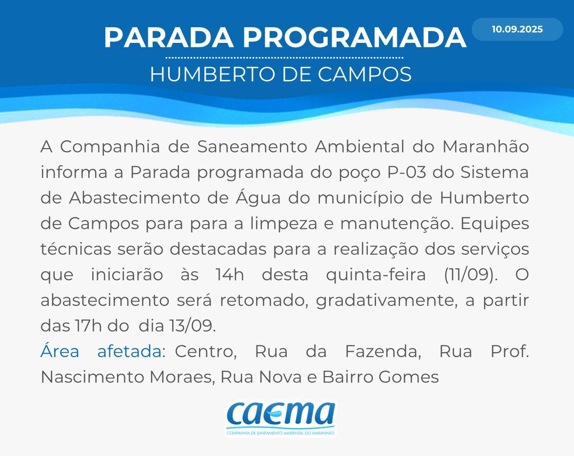 AVISO DE PRIVACIDADE: A CAEMA utiliza as informações sobre sua navegação para melhorar a sua experiência no site e oferecer soluções mais adequadas para você. Não utilizamos seus dados de cookies para estatísticas ou marketing. Ao continuar navegando, você concorda com a nossa Política de Privacidade.