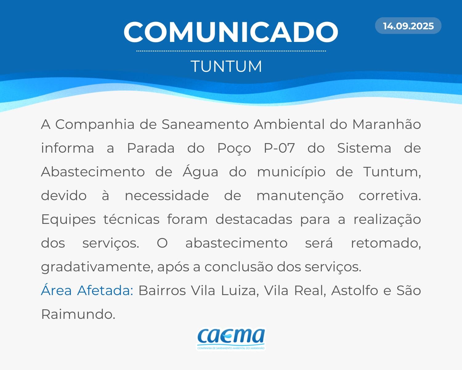 AVISO DE PRIVACIDADE: A CAEMA utiliza as informações sobre sua navegação para melhorar a sua experiência no site e oferecer soluções mais adequadas para você. Não utilizamos seus dados de cookies para estatísticas ou marketing. Ao continuar navegando, você concorda com a nossa Política de Privacidade.