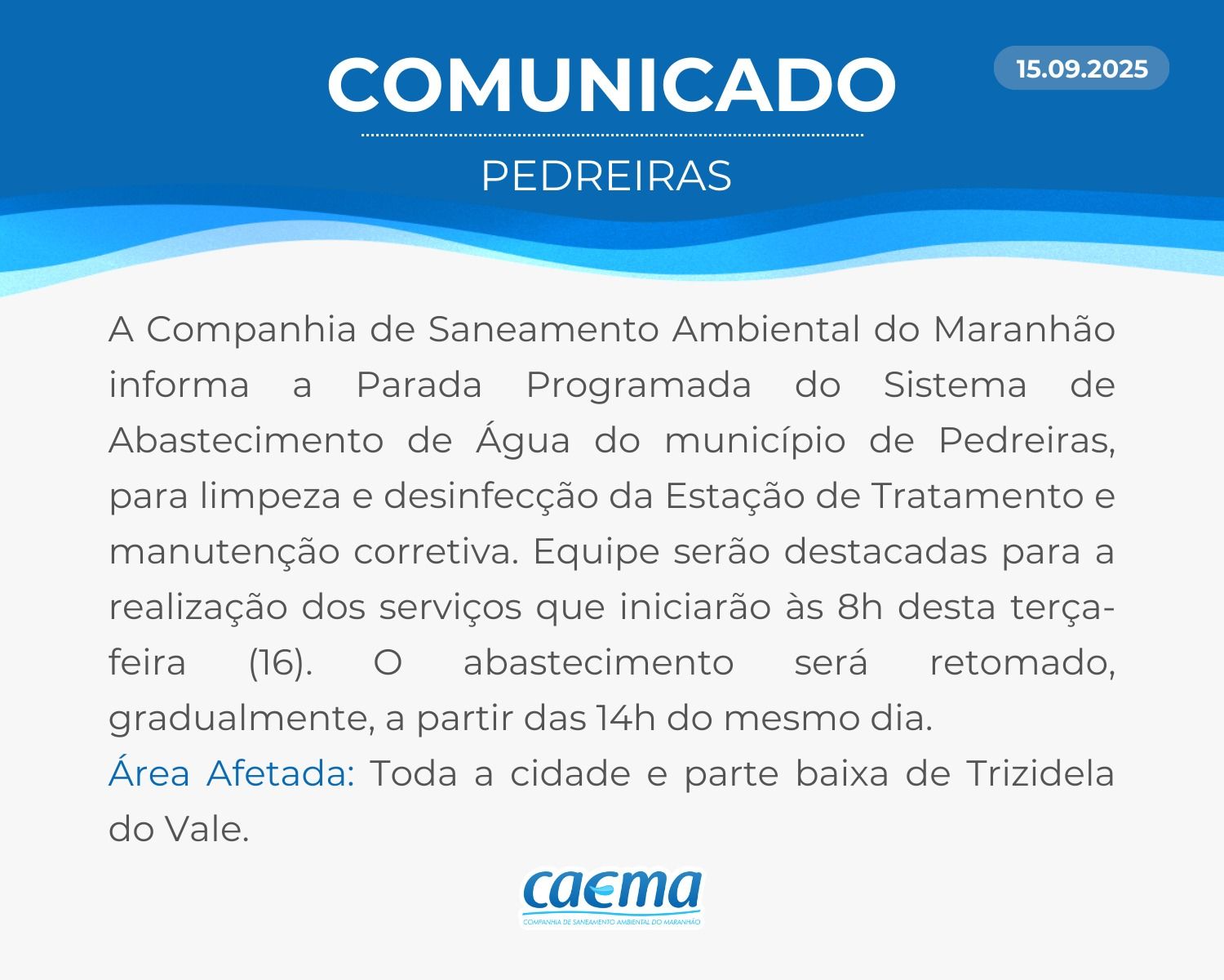 AVISO DE PRIVACIDADE: A CAEMA utiliza as informações sobre sua navegação para melhorar a sua experiência no site e oferecer soluções mais adequadas para você. Não utilizamos seus dados de cookies para estatísticas ou marketing. Ao continuar navegando, você concorda com a nossa Política de Privacidade.