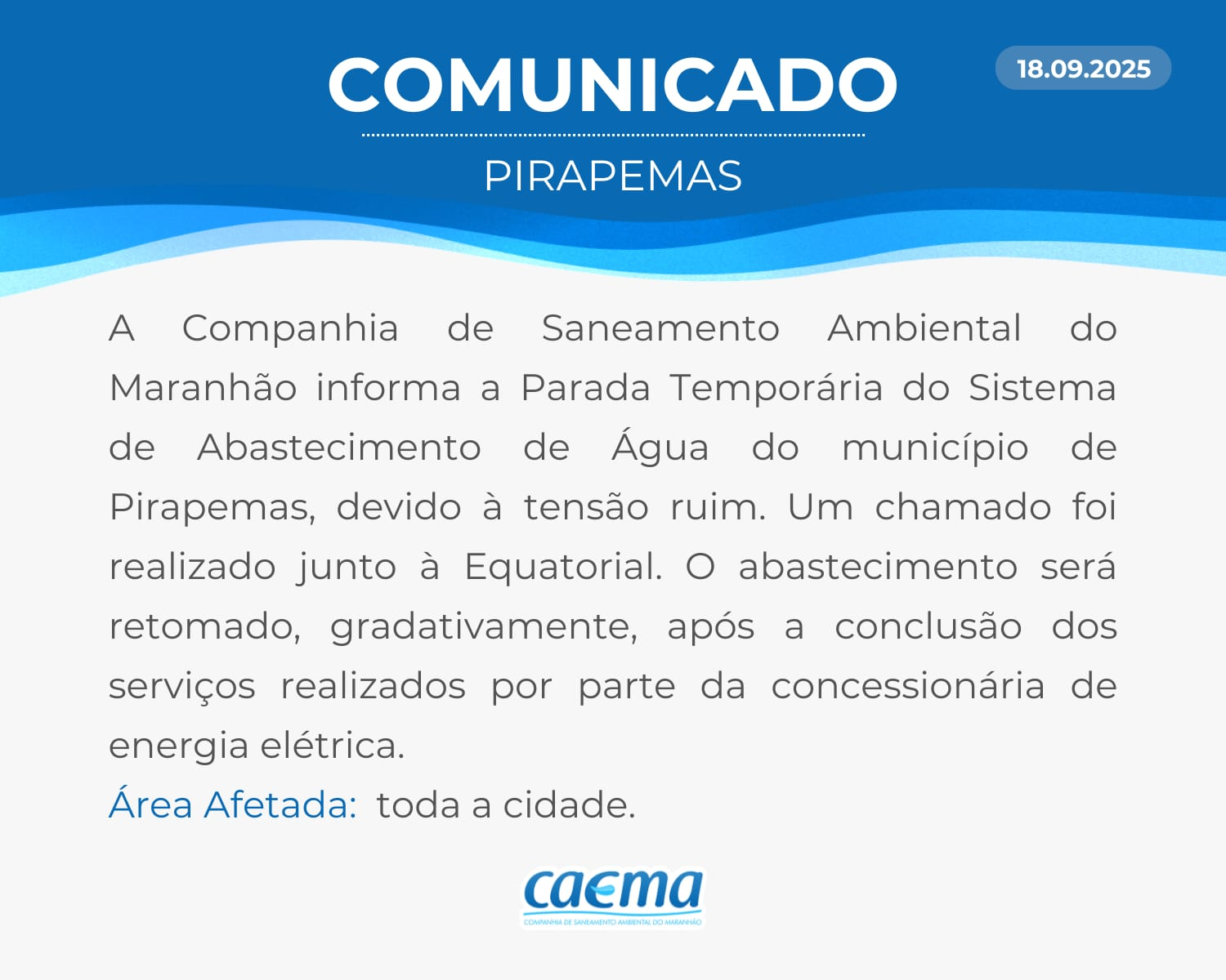 AVISO DE PRIVACIDADE: A CAEMA utiliza as informações sobre sua navegação para melhorar a sua experiência no site e oferecer soluções mais adequadas para você. Não utilizamos seus dados de cookies para estatísticas ou marketing. Ao continuar navegando, você concorda com a nossa Política de Privacidade.
