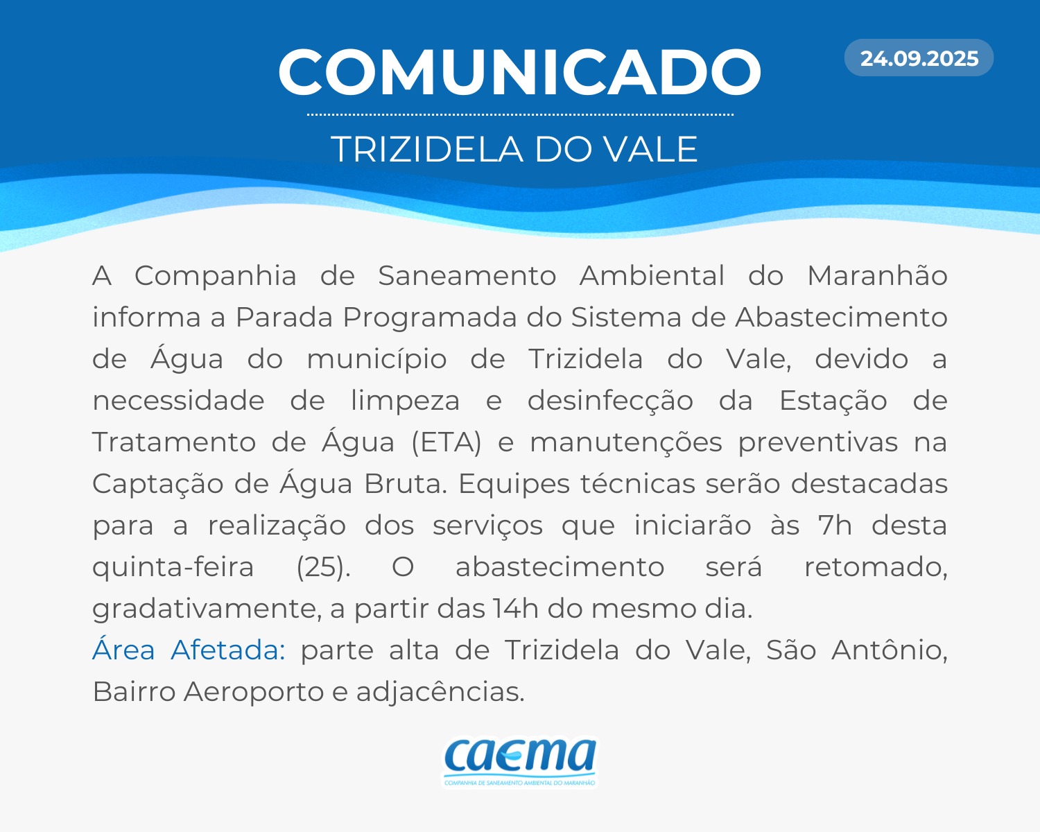 AVISO DE PRIVACIDADE: A CAEMA utiliza as informações sobre sua navegação para melhorar a sua experiência no site e oferecer soluções mais adequadas para você. Não utilizamos seus dados de cookies para estatísticas ou marketing. Ao continuar navegando, você concorda com a nossa Política de Privacidade.