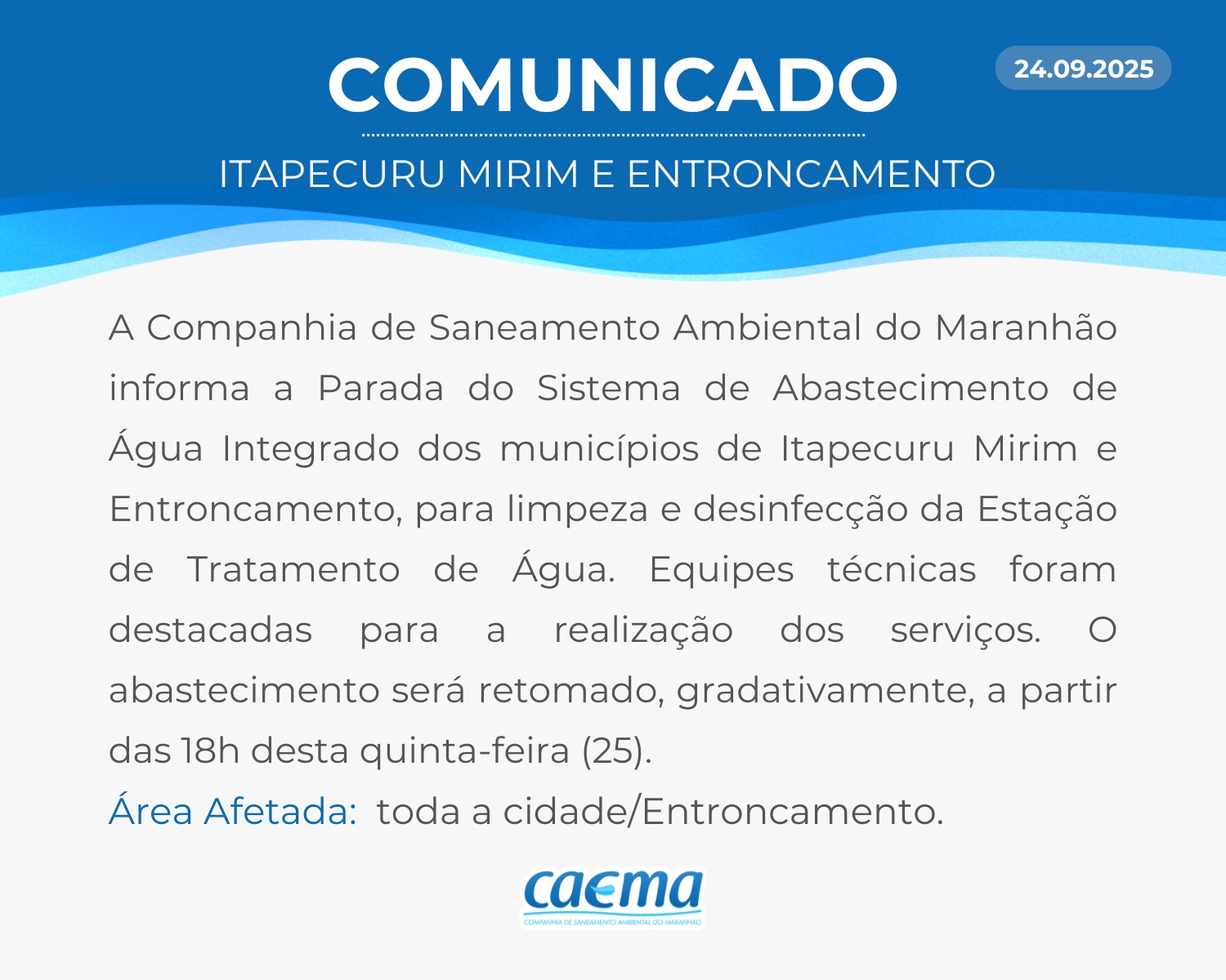 AVISO DE PRIVACIDADE: A CAEMA utiliza as informações sobre sua navegação para melhorar a sua experiência no site e oferecer soluções mais adequadas para você. Não utilizamos seus dados de cookies para estatísticas ou marketing. Ao continuar navegando, você concorda com a nossa Política de Privacidade.
