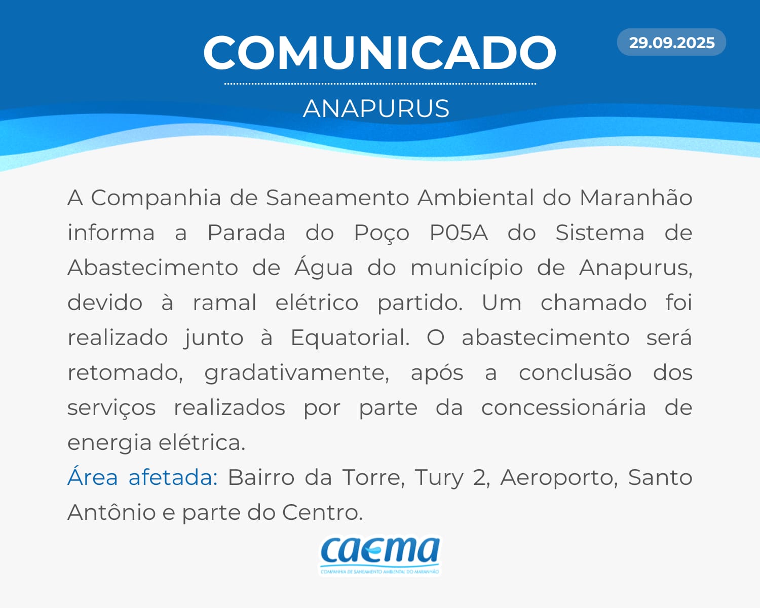 AVISO DE PRIVACIDADE: A CAEMA utiliza as informações sobre sua navegação para melhorar a sua experiência no site e oferecer soluções mais adequadas para você. Não utilizamos seus dados de cookies para estatísticas ou marketing. Ao continuar navegando, você concorda com a nossa Política de Privacidade.