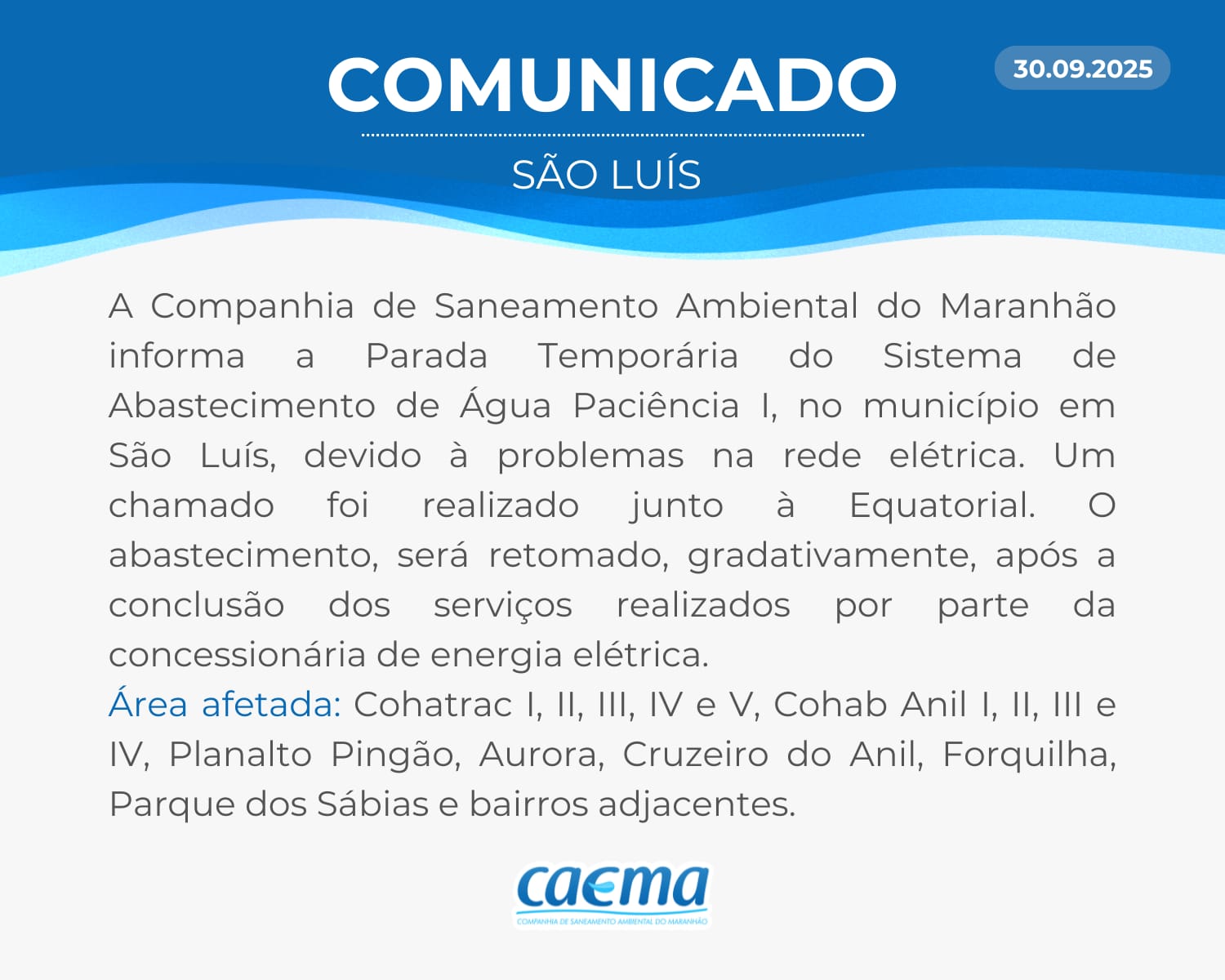 AVISO DE PRIVACIDADE: A CAEMA utiliza as informações sobre sua navegação para melhorar a sua experiência no site e oferecer soluções mais adequadas para você. Não utilizamos seus dados de cookies para estatísticas ou marketing. Ao continuar navegando, você concorda com a nossa Política de Privacidade.