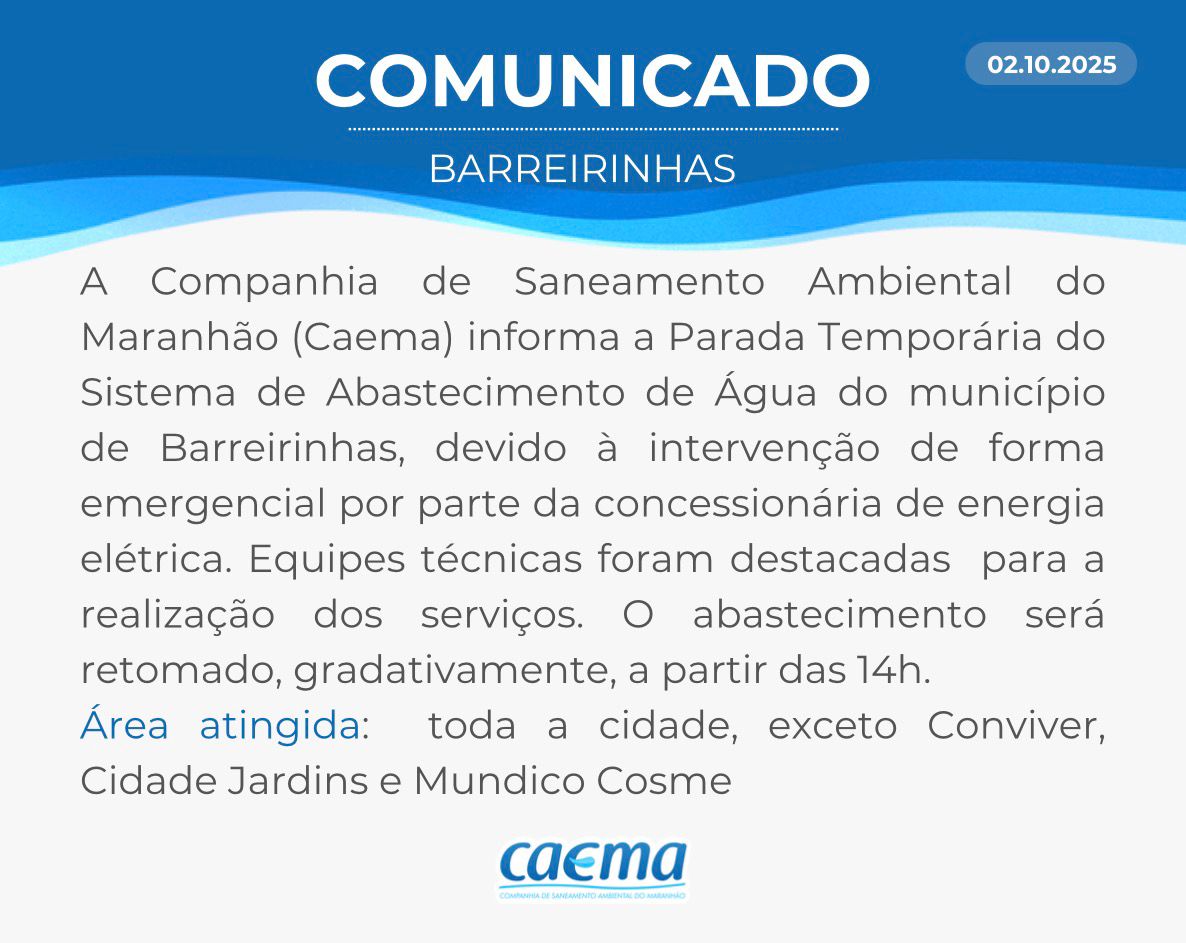 AVISO DE PRIVACIDADE: A CAEMA utiliza as informações sobre sua navegação para melhorar a sua experiência no site e oferecer soluções mais adequadas para você. Não utilizamos seus dados de cookies para estatísticas ou marketing. Ao continuar navegando, você concorda com a nossa Política de Privacidade.