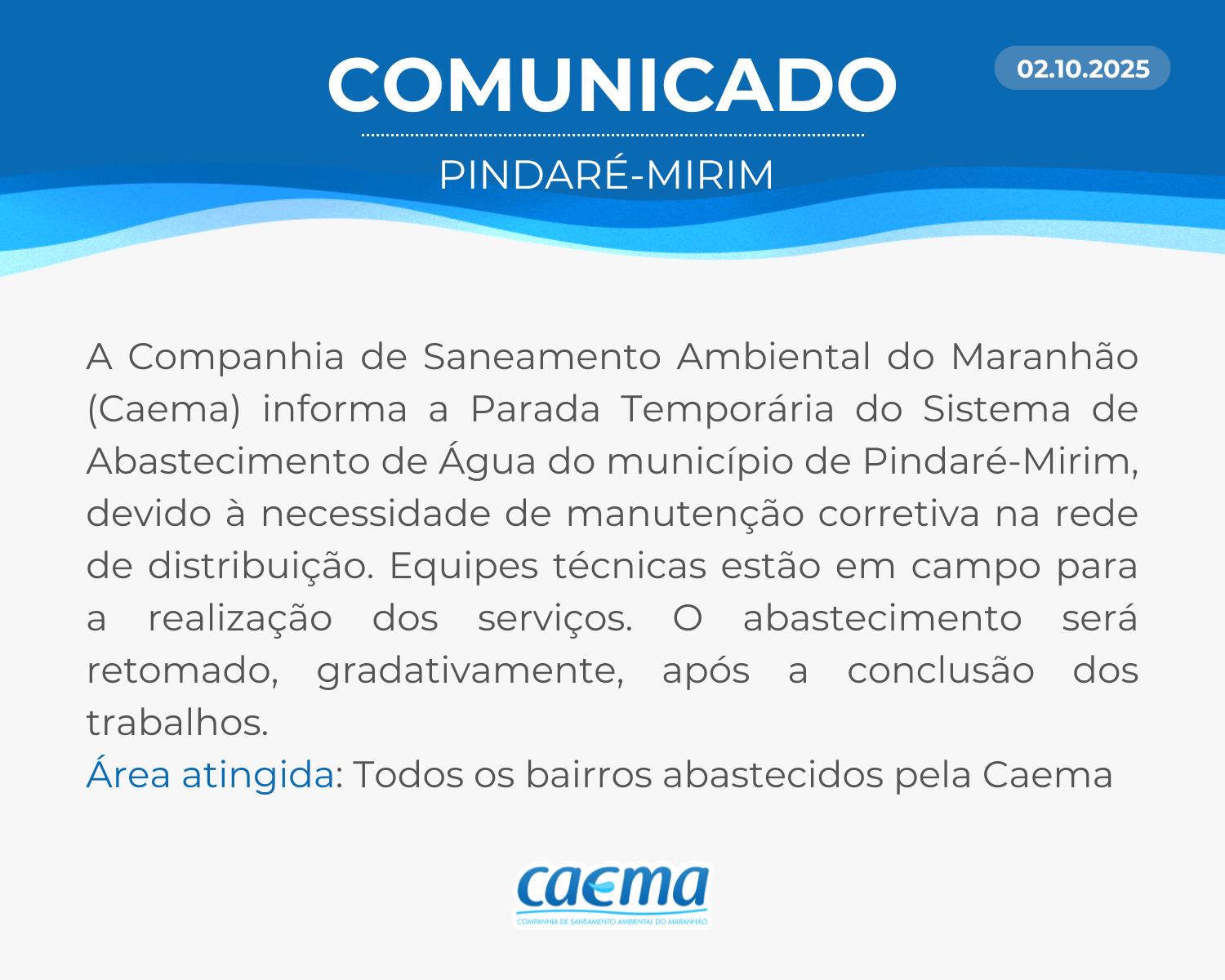 AVISO DE PRIVACIDADE: A CAEMA utiliza as informações sobre sua navegação para melhorar a sua experiência no site e oferecer soluções mais adequadas para você. Não utilizamos seus dados de cookies para estatísticas ou marketing. Ao continuar navegando, você concorda com a nossa Política de Privacidade.