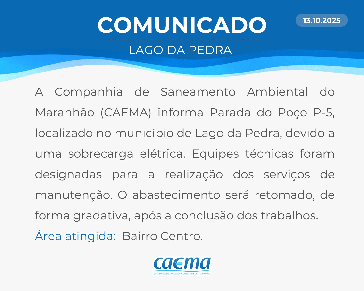 AVISO DE PRIVACIDADE: A CAEMA utiliza as informações sobre sua navegação para melhorar a sua experiência no site e oferecer soluções mais adequadas para você. Não utilizamos seus dados de cookies para estatísticas ou marketing. Ao continuar navegando, você concorda com a nossa Política de Privacidade.
