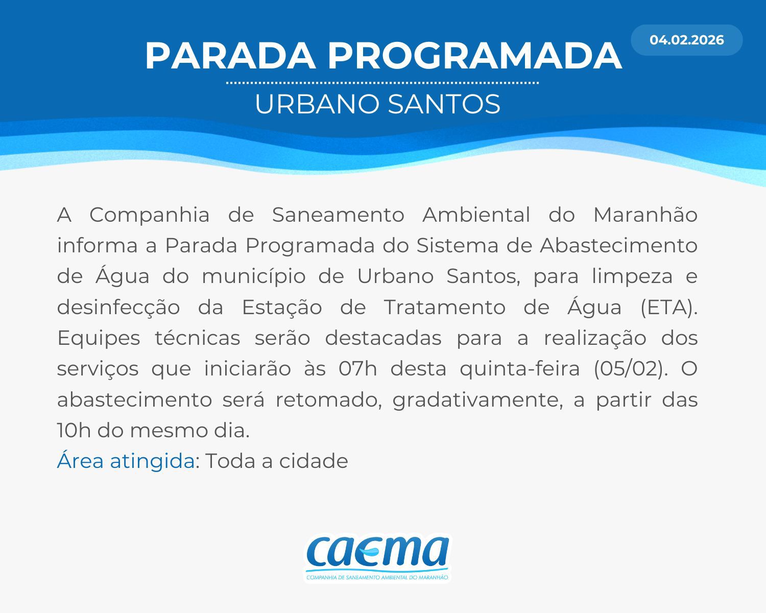 AVISO DE PRIVACIDADE: A CAEMA utiliza as informações sobre sua navegação para melhorar a sua experiência no site e oferecer soluções mais adequadas para você. Não utilizamos seus dados de cookies para estatísticas ou marketing. Ao continuar navegando, você concorda com a nossa Política de Privacidade.