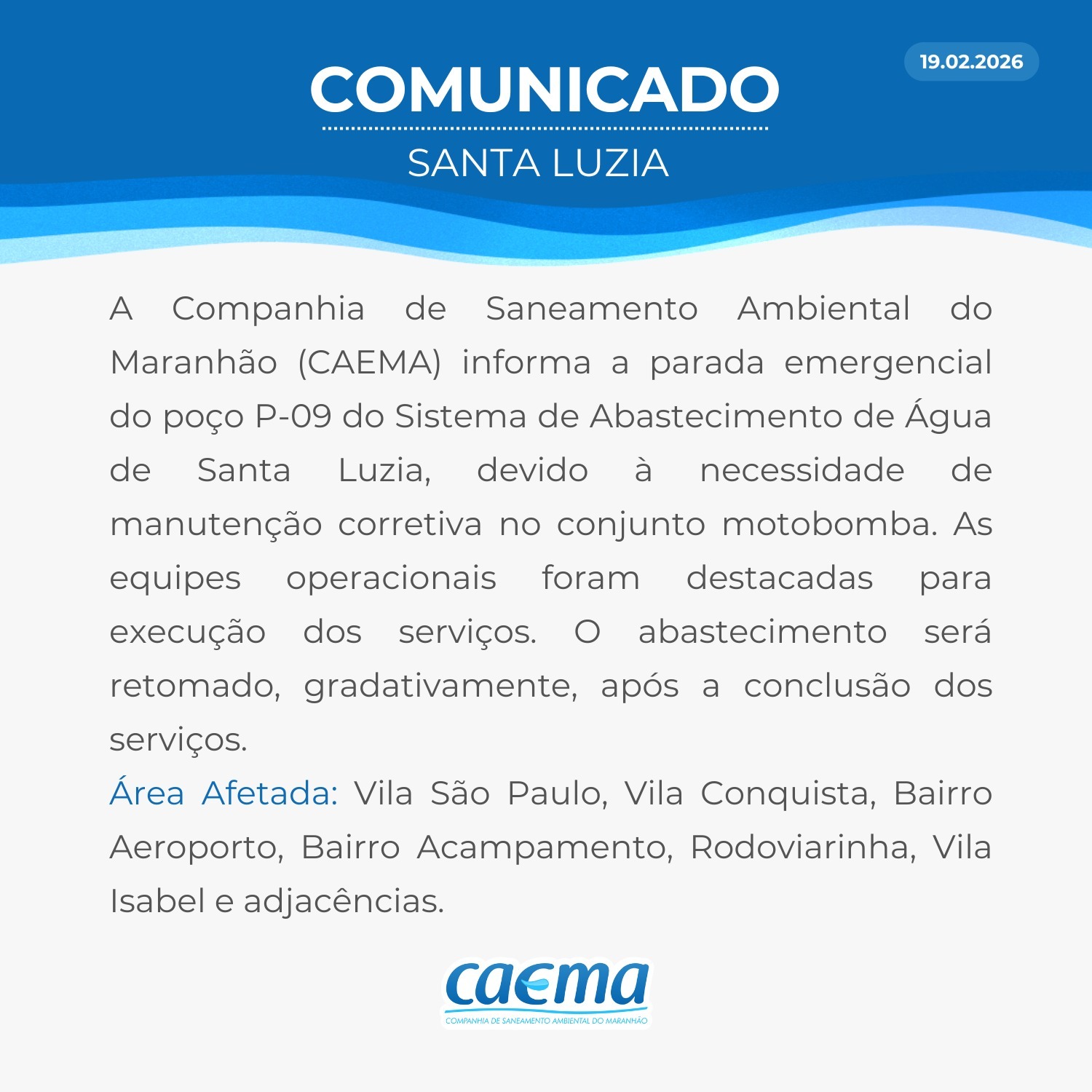 AVISO DE PRIVACIDADE: A CAEMA utiliza as informações sobre sua navegação para melhorar a sua experiência no site e oferecer soluções mais adequadas para você. Não utilizamos seus dados de cookies para estatísticas ou marketing. Ao continuar navegando, você concorda com a nossa Política de Privacidade.