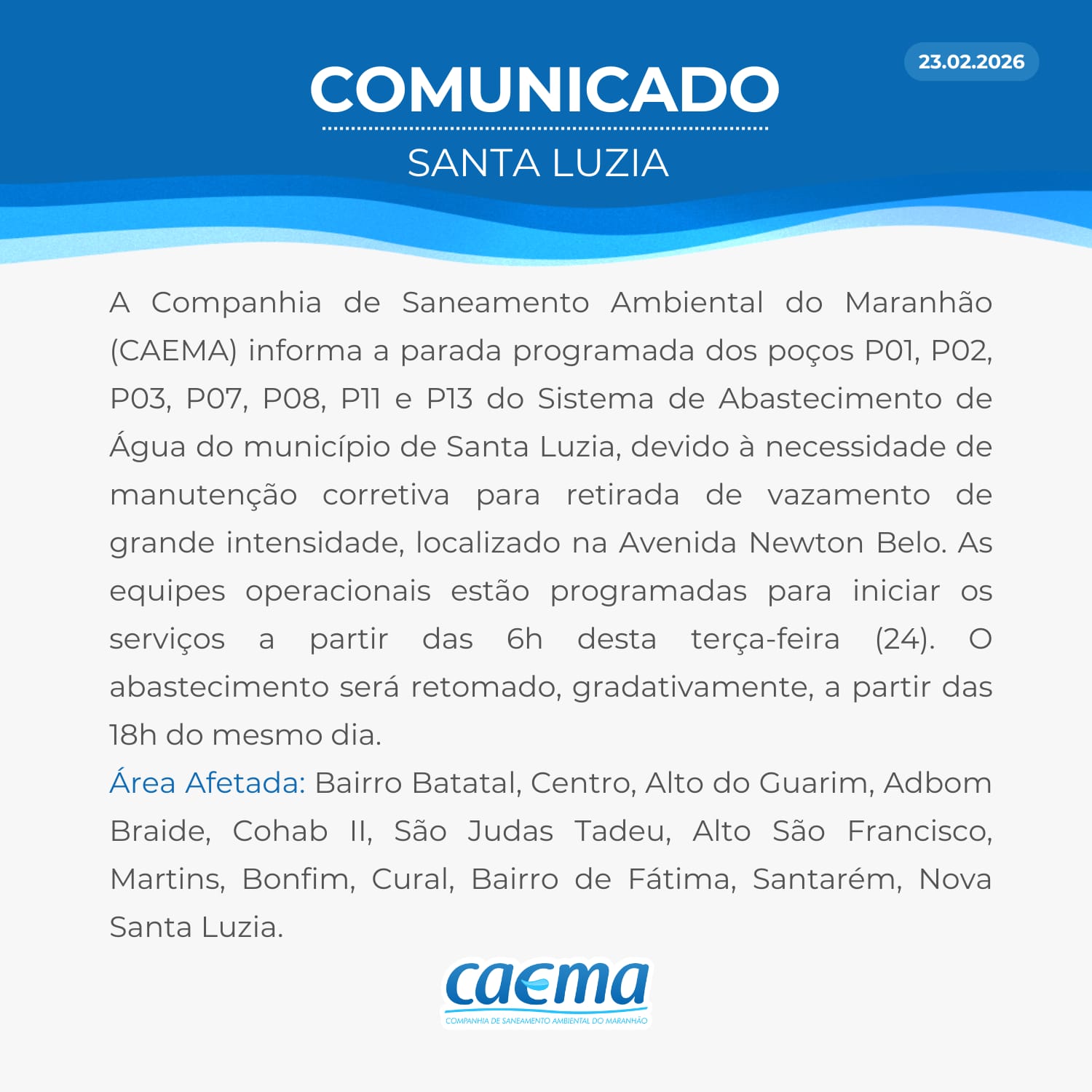 AVISO DE PRIVACIDADE: A CAEMA utiliza as informações sobre sua navegação para melhorar a sua experiência no site e oferecer soluções mais adequadas para você. Não utilizamos seus dados de cookies para estatísticas ou marketing. Ao continuar navegando, você concorda com a nossa Política de Privacidade.