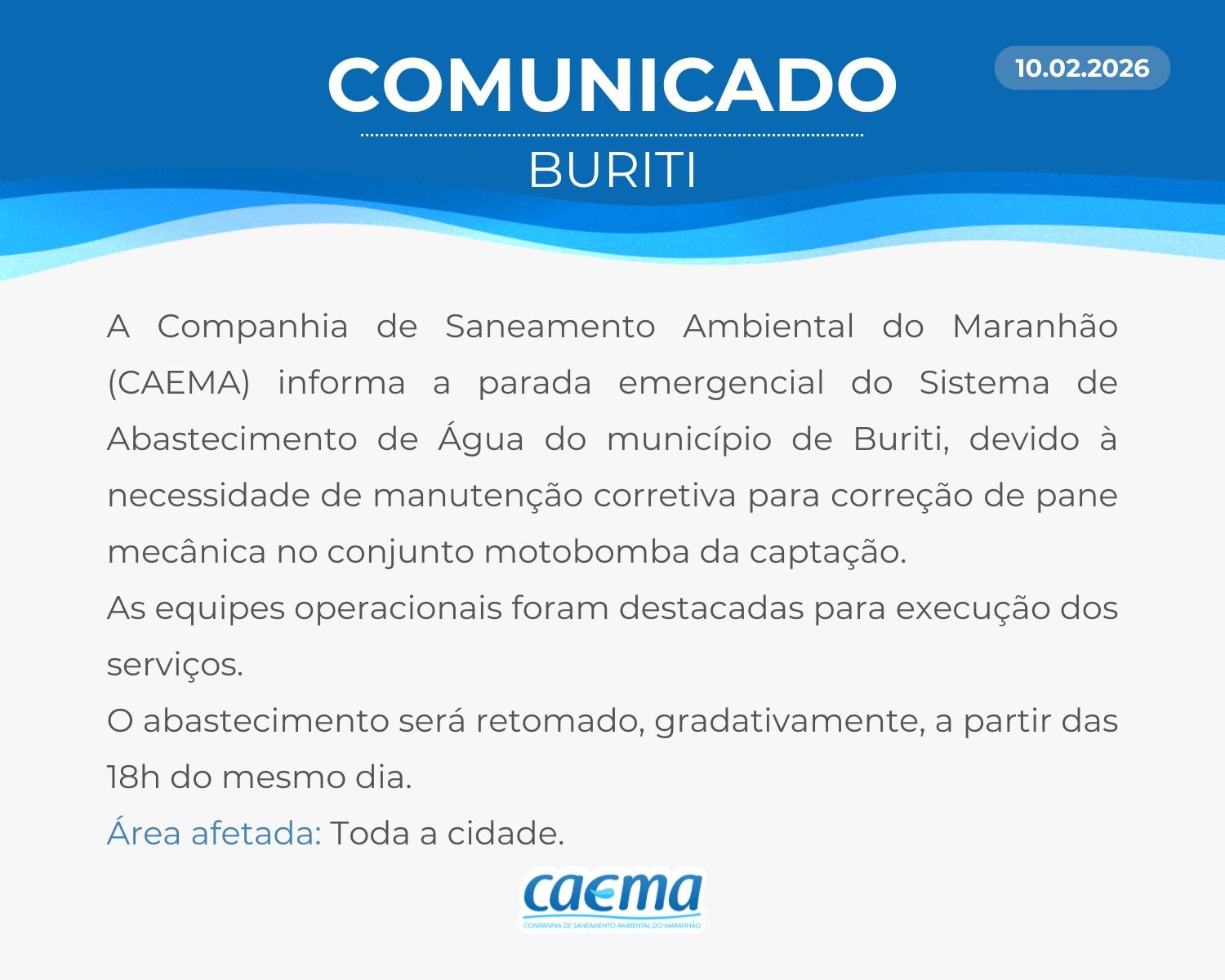 AVISO DE PRIVACIDADE: A CAEMA utiliza as informações sobre sua navegação para melhorar a sua experiência no site e oferecer soluções mais adequadas para você. Não utilizamos seus dados de cookies para estatísticas ou marketing. Ao continuar navegando, você concorda com a nossa Política de Privacidade.