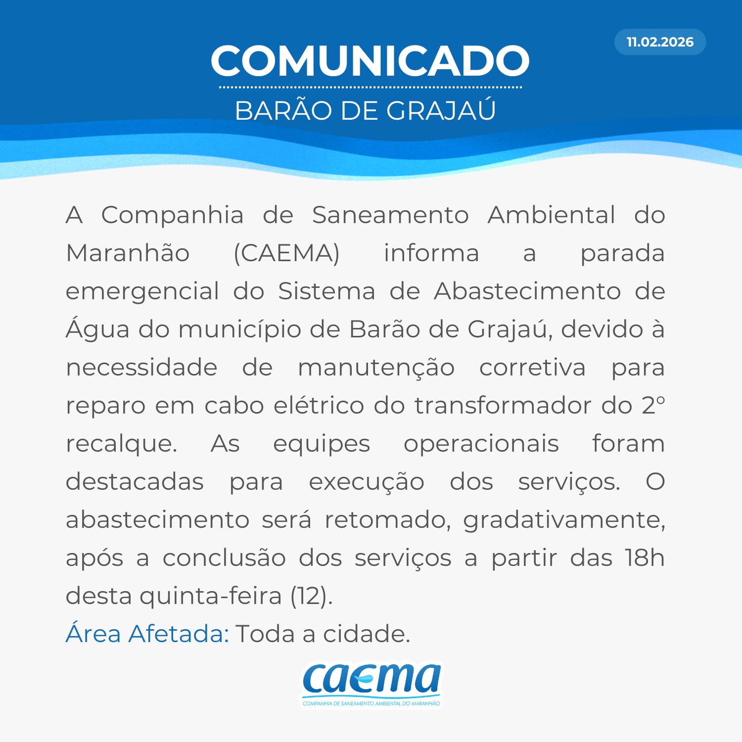 AVISO DE PRIVACIDADE: A CAEMA utiliza as informações sobre sua navegação para melhorar a sua experiência no site e oferecer soluções mais adequadas para você. Não utilizamos seus dados de cookies para estatísticas ou marketing. Ao continuar navegando, você concorda com a nossa Política de Privacidade.