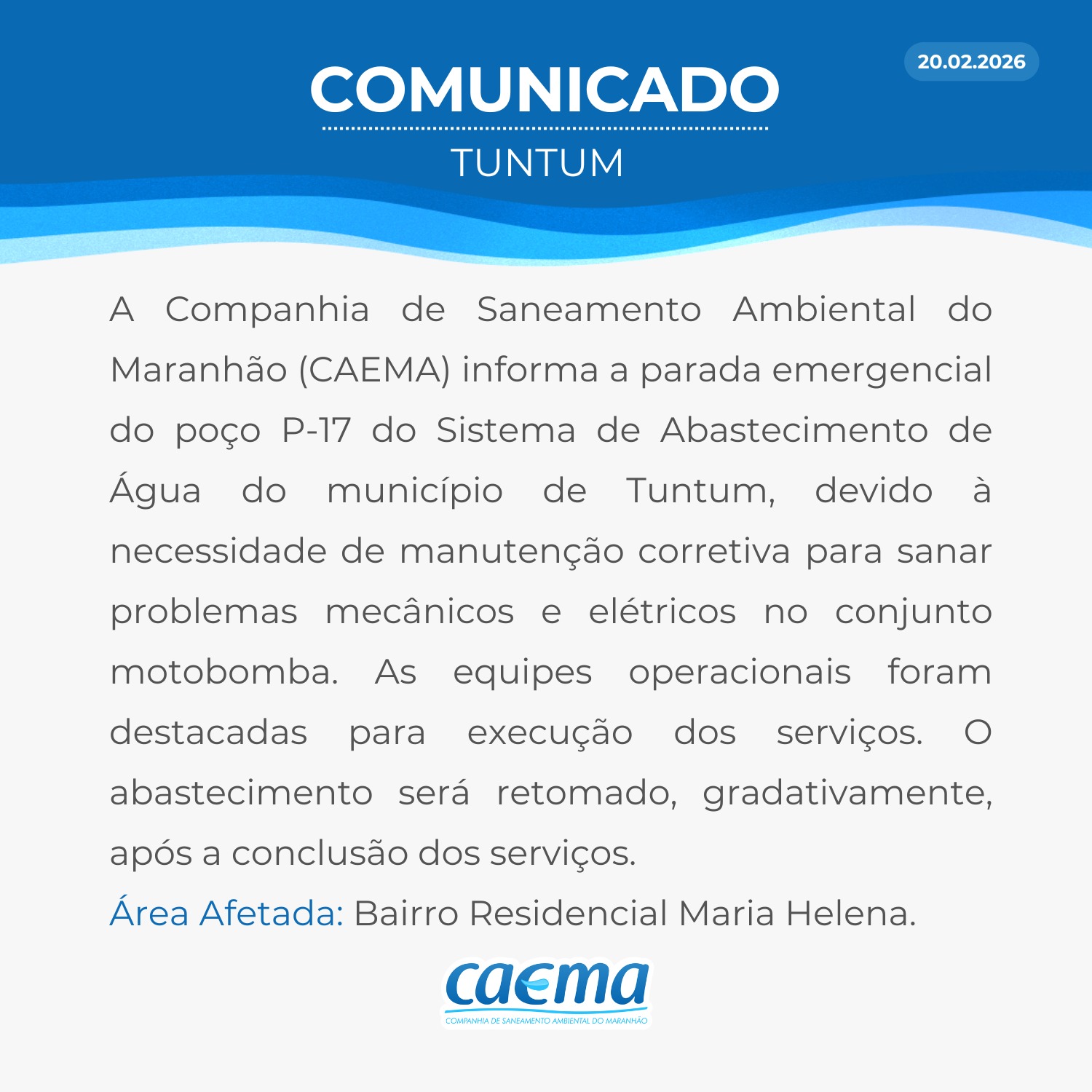 AVISO DE PRIVACIDADE: A CAEMA utiliza as informações sobre sua navegação para melhorar a sua experiência no site e oferecer soluções mais adequadas para você. Não utilizamos seus dados de cookies para estatísticas ou marketing. Ao continuar navegando, você concorda com a nossa Política de Privacidade.